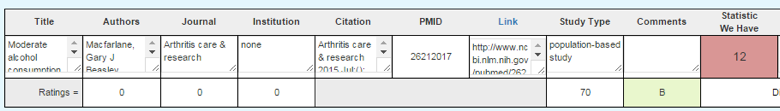 The most important thing is to find the "Statistic We Have." The other important things to do are to do the ratings that go with the STAR block. The ratings will automatically be changed to grades for you, which will show up on the green (green for grades) boxes. The relevance and overall quality of the STAR block statistic for the diagnosis we are looking at are entered all the way on the right side.