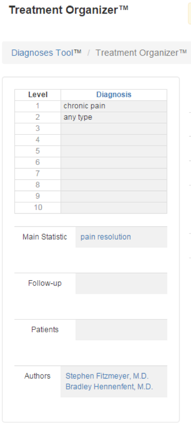 The overall concept is to create a diagnosis, organize a list of treatments for that diagnosis, and calculate Science of Medicine (SOM®) Treatment Scores by using data collected with the STAR Blocks. Basically, we are providing you all the tools to do evidence-based medicine.